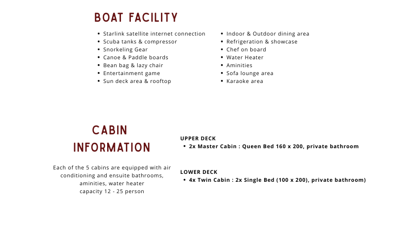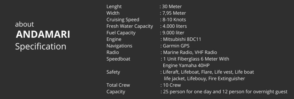 Berikut List Fasilitas dari Luxury Phinisi Andamari :